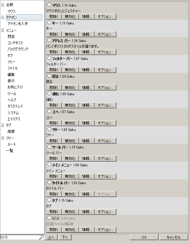 ・アドオンやメニューの設定で左下にある編集ボタンいつの間に付いていたのかわかりませんが、自然に付いていた編集ボタン。 チェックを外すと、今まで「ワンクリック」で出来た編集が「ダブルクリック」で編集出来るようになります。 なので、チェックを外すと編集が出来なくなるわけでは無いです。 さらにチェックを外してOKボタンを押して設定画面を消しても、次開いたときにはチェックが付いた状態に戻るため、有効なオプションかどうかは判断しかねます。 マウスジェスチャの設定