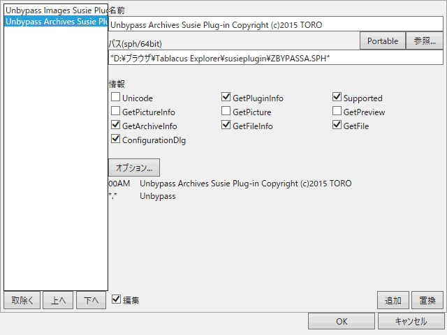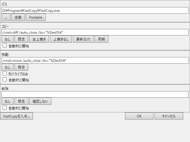 ・FastCopy 2015-11-16追加2016-09-15追加たぶんWin10以外だとexeを指定し、コピーと移動を規定にするだけで問題無く使える(削除はゴミ箱に入らない完全削除なのでなし推奨)。 Win10は管理者権限を入れてもコピーされなかったり、「管理者権限がないと実行できません」みたいなスクリプトエラー(TE側)が出たり、TEがFastEx64.dll(32bitだと32?)をロックするためFastCopyをアップデート出来なかったり、理由は「環境」に寄るものが大きく使用できない場合が多い。 Win10(1511ビルド10586.589)でFastCopy ver3.13+TE16.8.21、両方一般ユーザー状態でまともに使えました。 ・Susie プラグイン 2017-03-03追加2017-03-04追加