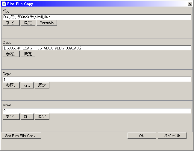 ・FireFileCopydllを指定するだけ。32bitなら標準搭載の「ffc_shell.dll」でいいのだが、64bitの場合A-1 DRIVE -Software / Fire File Copyから「シェル拡張メニューのx64版DLL」をDLしてきて、「ffc_shell_64.dll」を指定する必要がある。